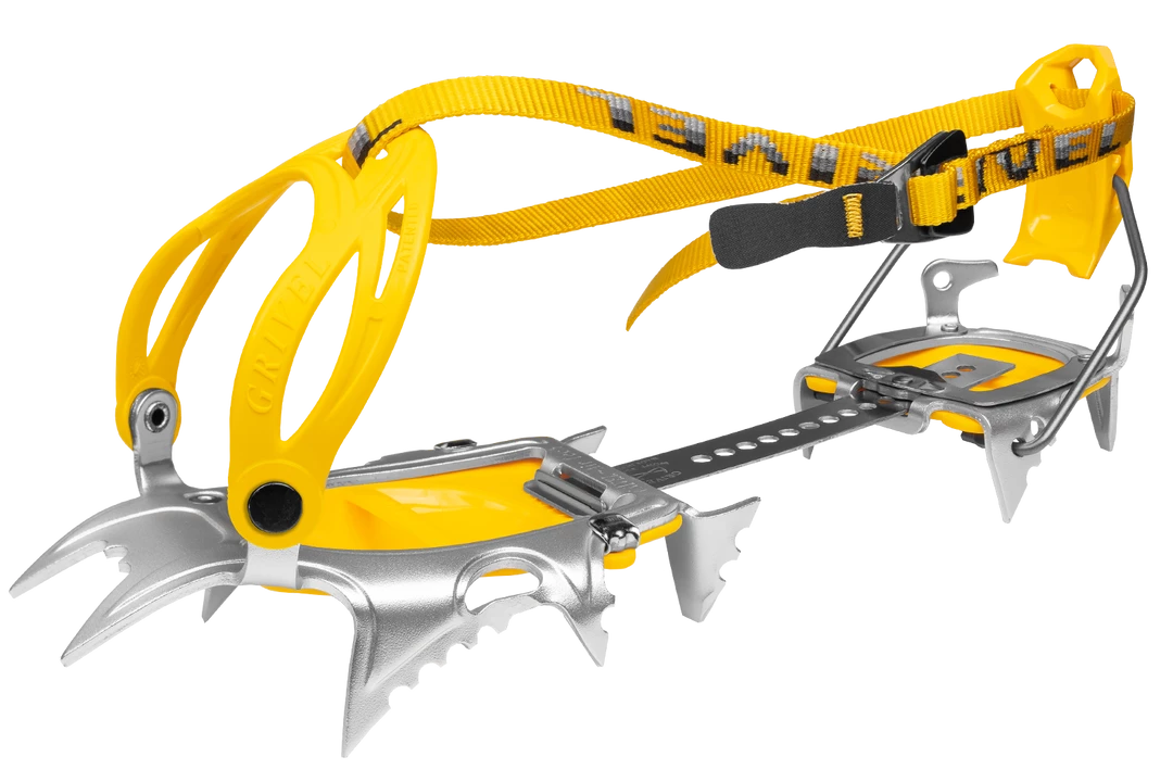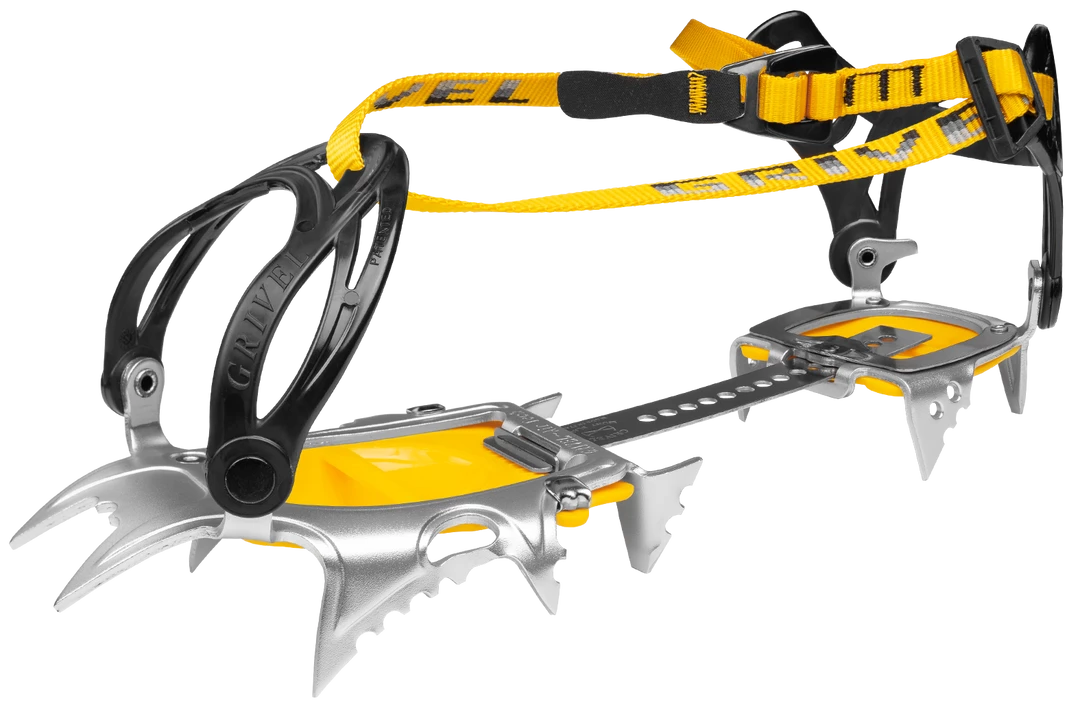Air Tech Light Wide, in aluminum, is a close relative of the Air Tech family butΒ with a significantly lower weight. Suitable for both mountaineering and ski touring. It has 12 points distributed in order to allow incredible performances on ice and snow. Thanks to the flexible regulation bar, it follows every movement of our foot. Adaptable thanks to the New-Matic Wide EVO and New-Classic Wide EVO systems. Equipped with the famous Grivel proactiveΒ AntibottΒ both in the front and the rear. Its strong points are lightness and stability.