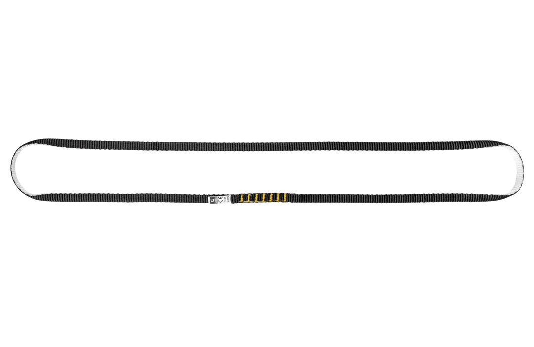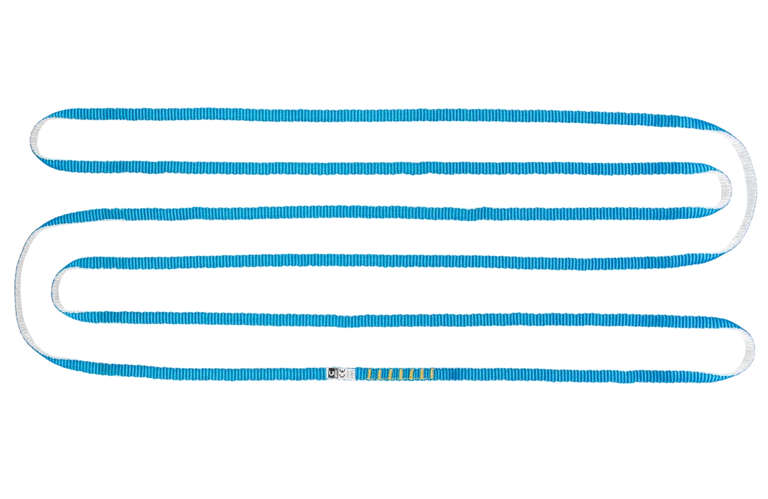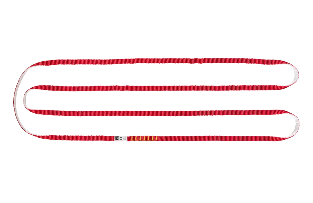 Made with Dyneema on the inside and polyester on the outside, this unique webbing ring exists in different sizes with color coding: 60cm (black), 120cm (red) and 180cm (blue). The dyneema has exceptional resistance, comparable to that of steel cables, but with the advantage of resisting very well the torsion and bending stresses. Dyneema fiber is practically free of elasticity. Ideal for climbing and mountaineering, where lightness and versatility are needed.