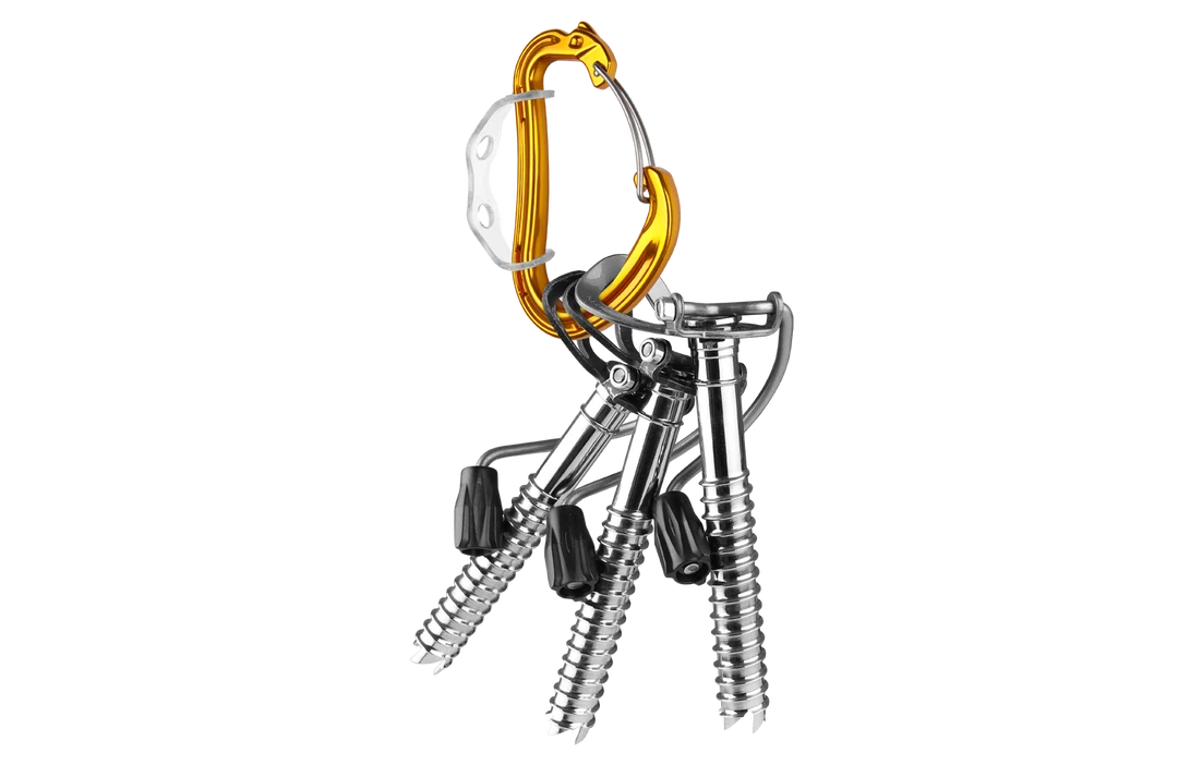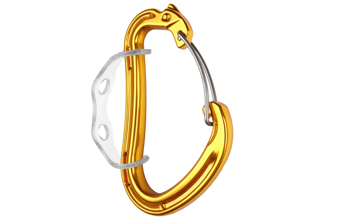 It is a “2 in 1” product: a great carabiner, but at the same time it has been specially designed to be also used as a screw/gear carrier on the harness. It has two lumps on the body: one to better fix in on the harness, and the orther one to place the screws wile picking them. It comes with a rubber strip to help fix it on any harness. Individually tested, with the date of testing and progressive number laser-marked on it.