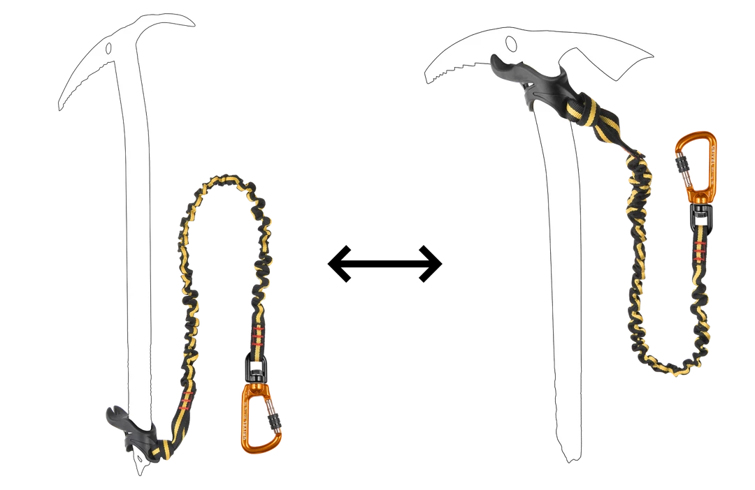 Easy slider 2.0 is a support for the hand and also acts as protection from impacts against the wall. It can be moved from the top to the bottom of the shaft and vice versa, and it supports the hand in traction. It is supplied with a removable elasticated lanyard, with Rotor swivel-carabiner (link) to facilitate maneuvers. Very useful to improve the grip and not lose the ice ax during use, thanks to its elasticity it has no impediments during the activity. It does not support the weight of the climber, only the ice axe itself.