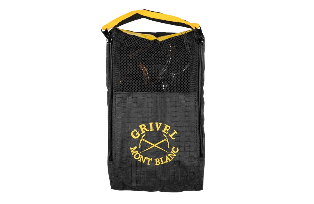 Gear Safe is a case designed for the transport of ice screws or other climbing gear. It has a large opening with 2 hinges, the net is designed to dry the material thus avoiding rust.