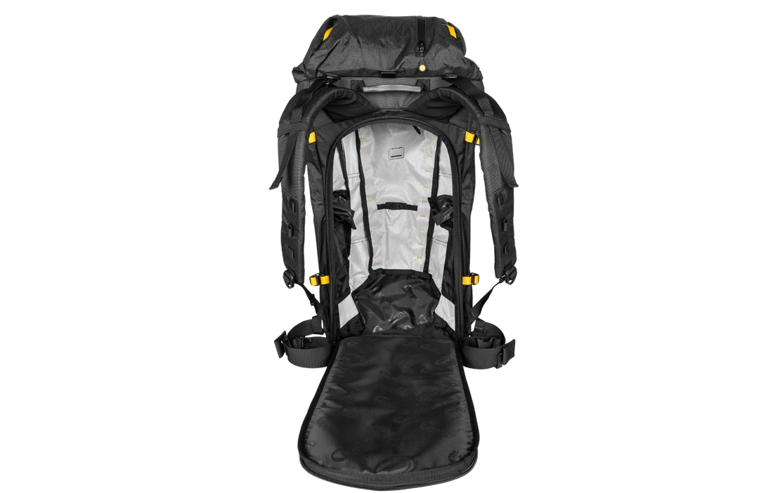 Slings, laces, ice axe holder, and belt are concealable. Large and fast upper opening to obtain perfect functionality. Zip opening on the back for easy access in any situation.