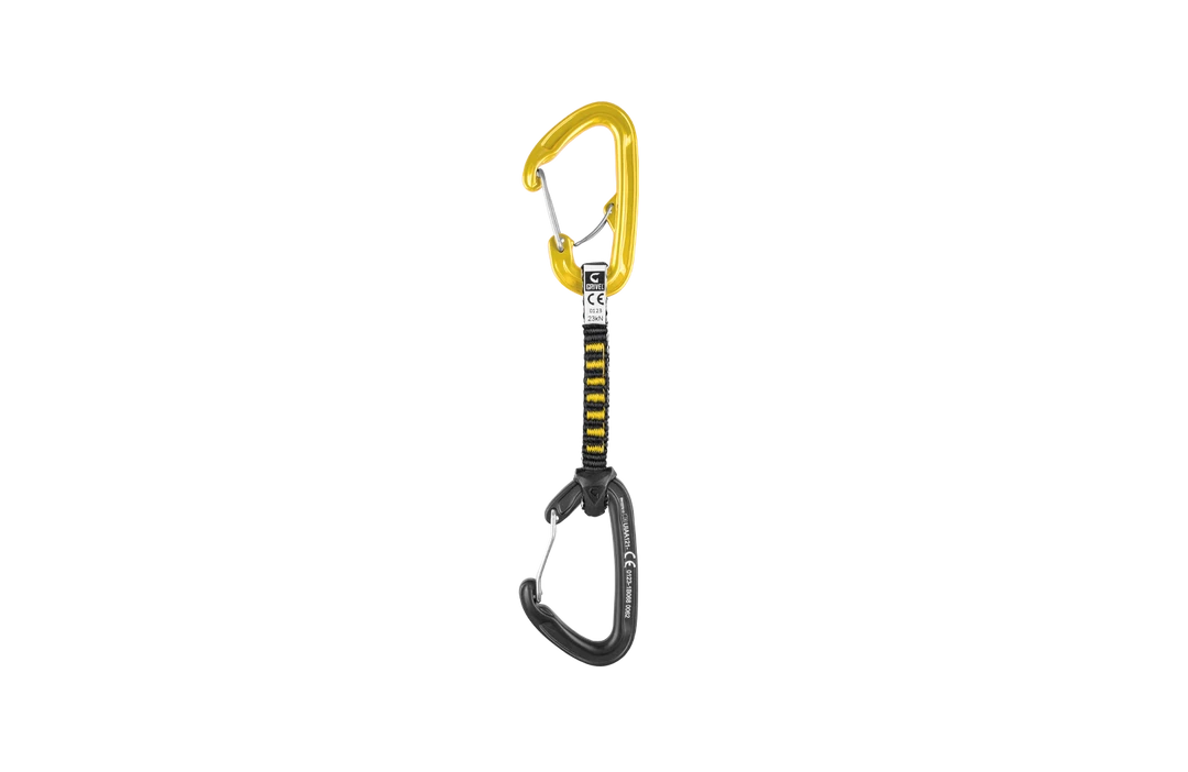 Quickdraw made with one Plume wire carabiners, one Plume CaptiveΒ with Captive anti-rotation systemΒ and an Alpine sling. Available in two sizes: 10cm and 16cm.