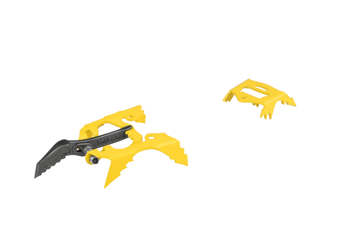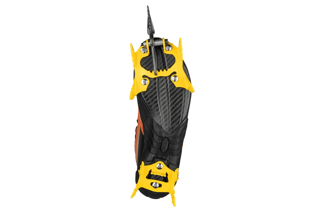 Racing is used by experienced climbers during races in particular. Usable both on ice and on rock, the pieces have to be mounted directly on climbing boots. It has a forged steel front point, replaceable in case of wear. The forging allows a three-dimensional shape to improve both the penetration into the ice, without rebounds, and the support.
