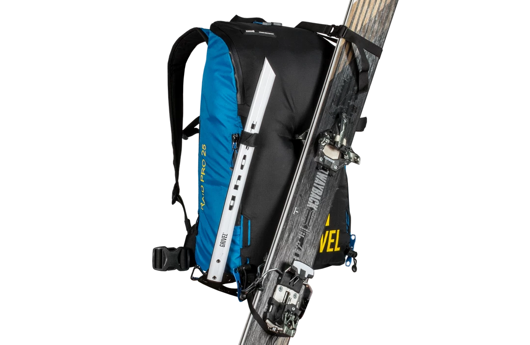 This pack is designed with a very clean, minimal and versatile line, at a very low weight. It features a diagonal concealable ski carrier and double removable ice axe holder. The double opening, on the top and on the back is very practical and comfortable. RECCO reflector included, on the top part.