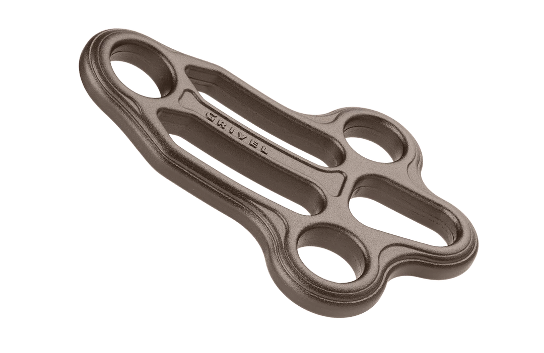The curved shape and the asymmetry of the slots offers four different possibilities for braking the ropes, depending on the side (greater braking with upward curvature) and the direction (greater braking with “V” holes upwards) . This allows you to better manage ropes of different diameters, dry and wet and icy. Easy release in the event of a fall of one second by using the elongated lower hole with a webbing ring.