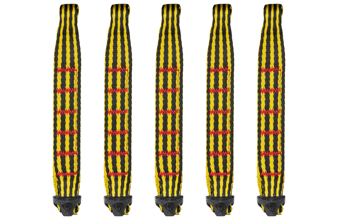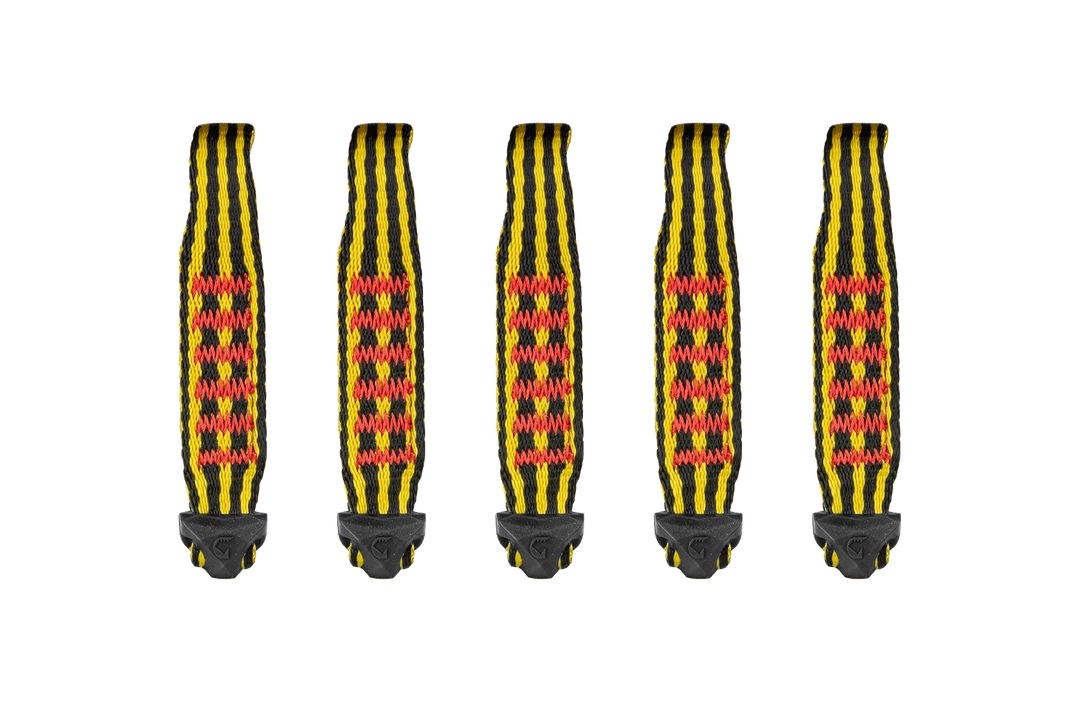 Pack of five sport climbing polyester slings of variable width, easy to grab and manipulate.