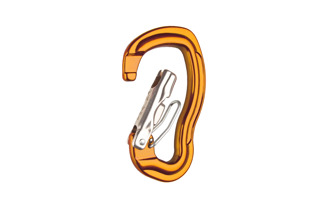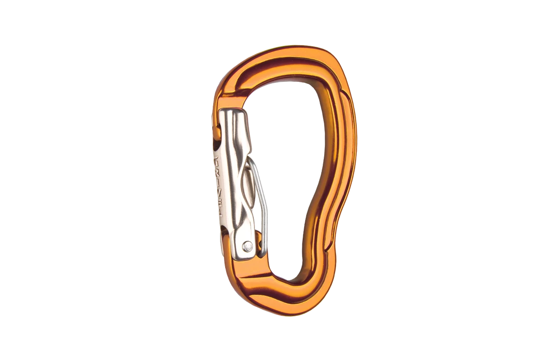 Multi-purpose carabiner with ergonomic shape. Very easy to use, it combines the efficient handling with safety, thanks to the innovative Wire-Lock system, in which the strength is given by the solid gate which is free to move, and the inside wire keeps the gate in the closed position. This design prevents the gate from opening accidentally and can be operated quickly. It’s also easy to use one handed or with gloves, and it features a clean nose to prevent snagging on ropes or bolts. Ideal for many situations in climbing and mountaineering, for belaying, on personal anchors and on belays. Individually tested, with the date of testing and progressive number laser-marked on it.