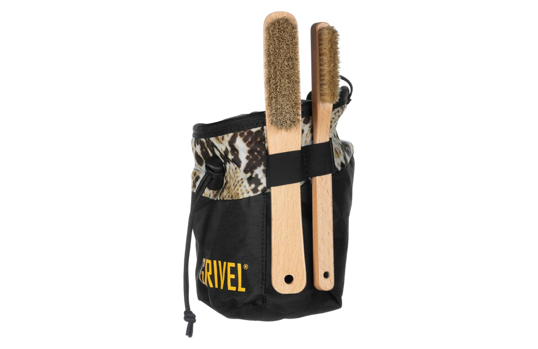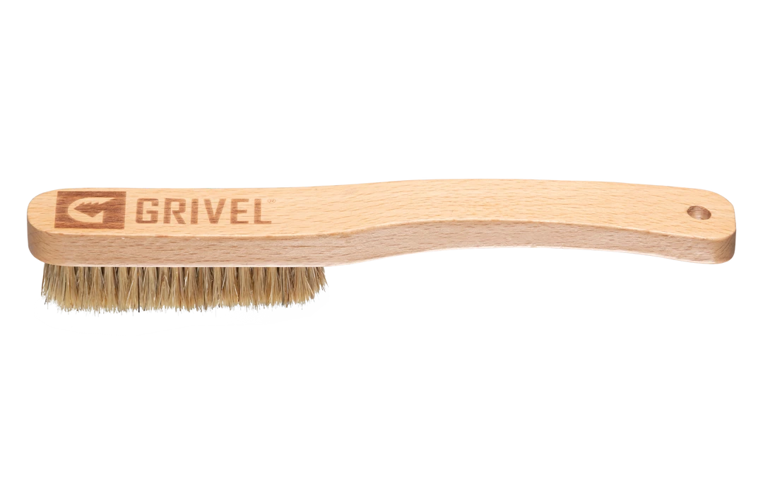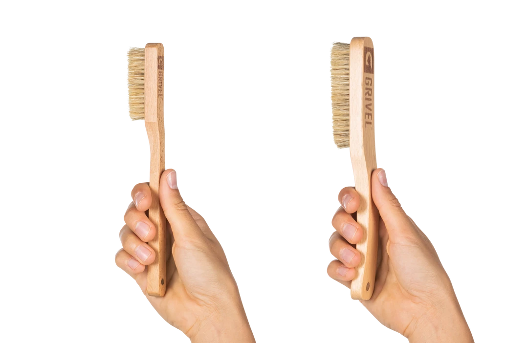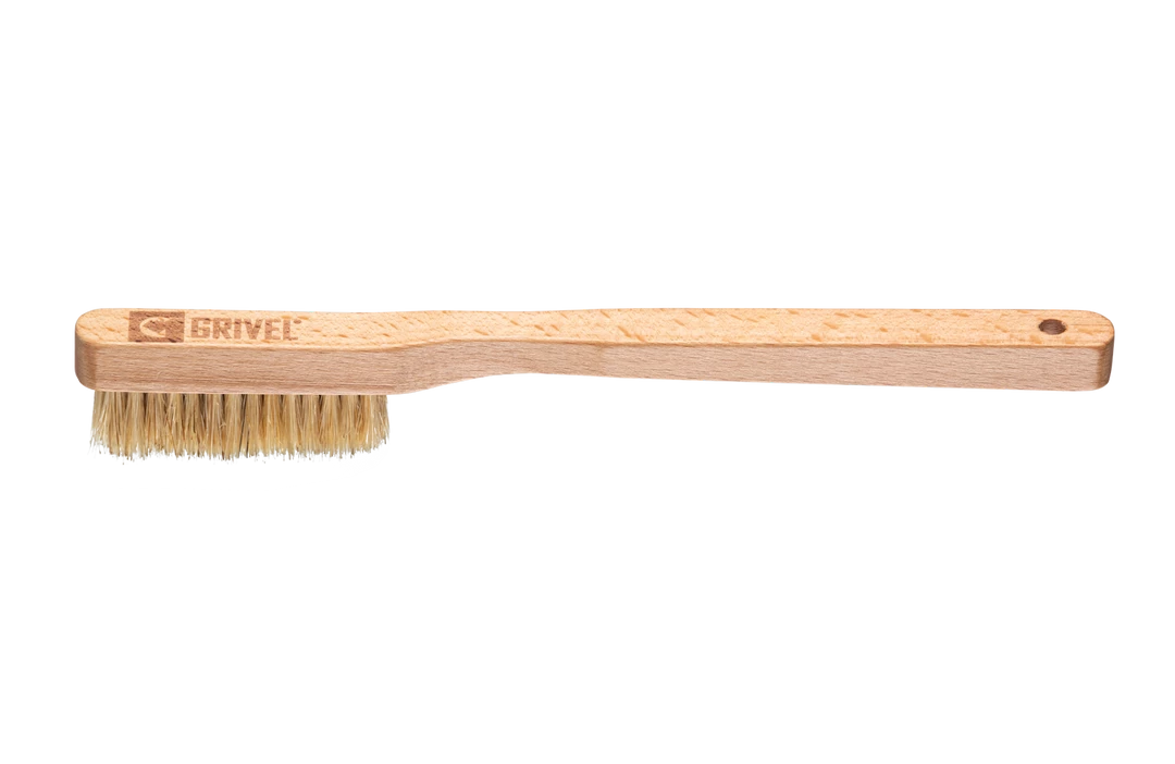 Brush for climbing holds, with beech wood handle and boar bristle hair.
